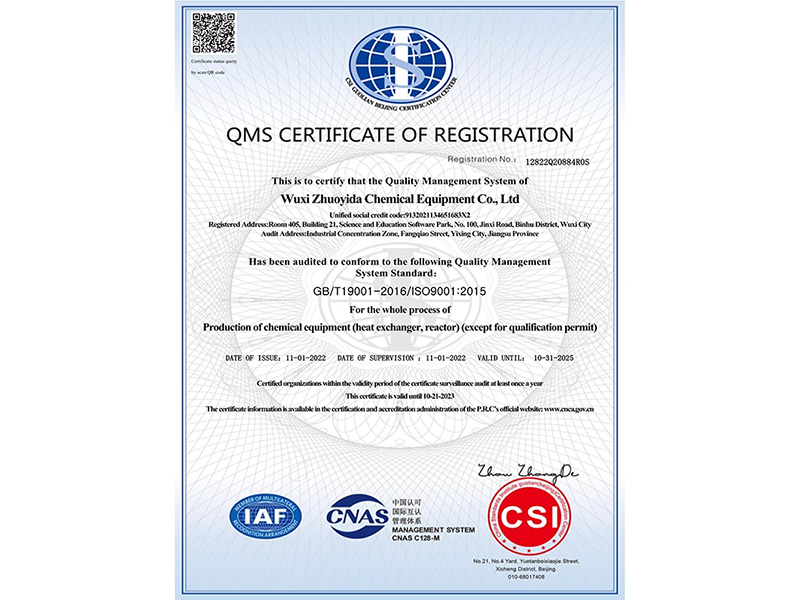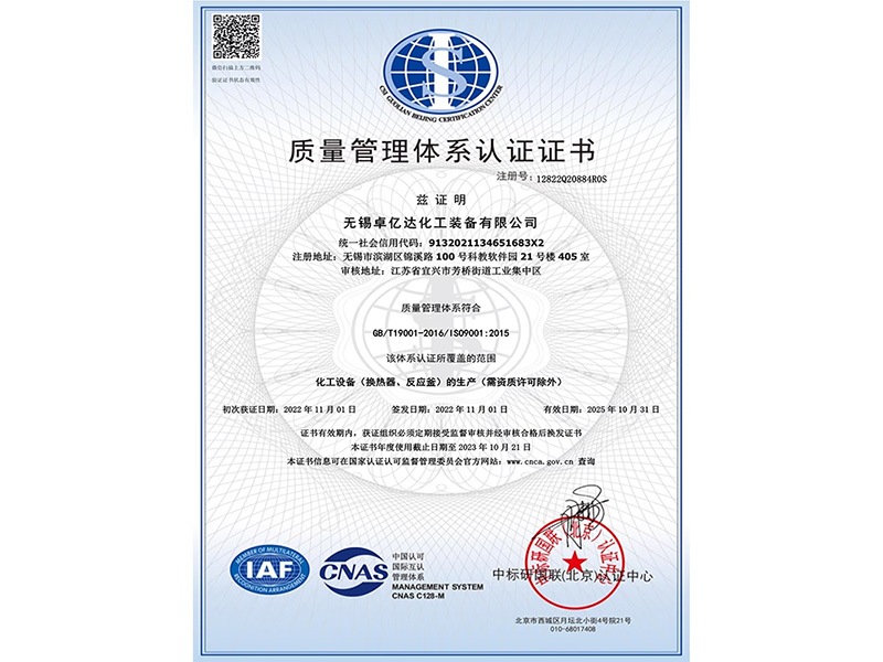 無錫卓億達(dá)化工裝備有限公司 質(zhì)量合格、誠信經(jīng)營、互惠互利、真誠相待